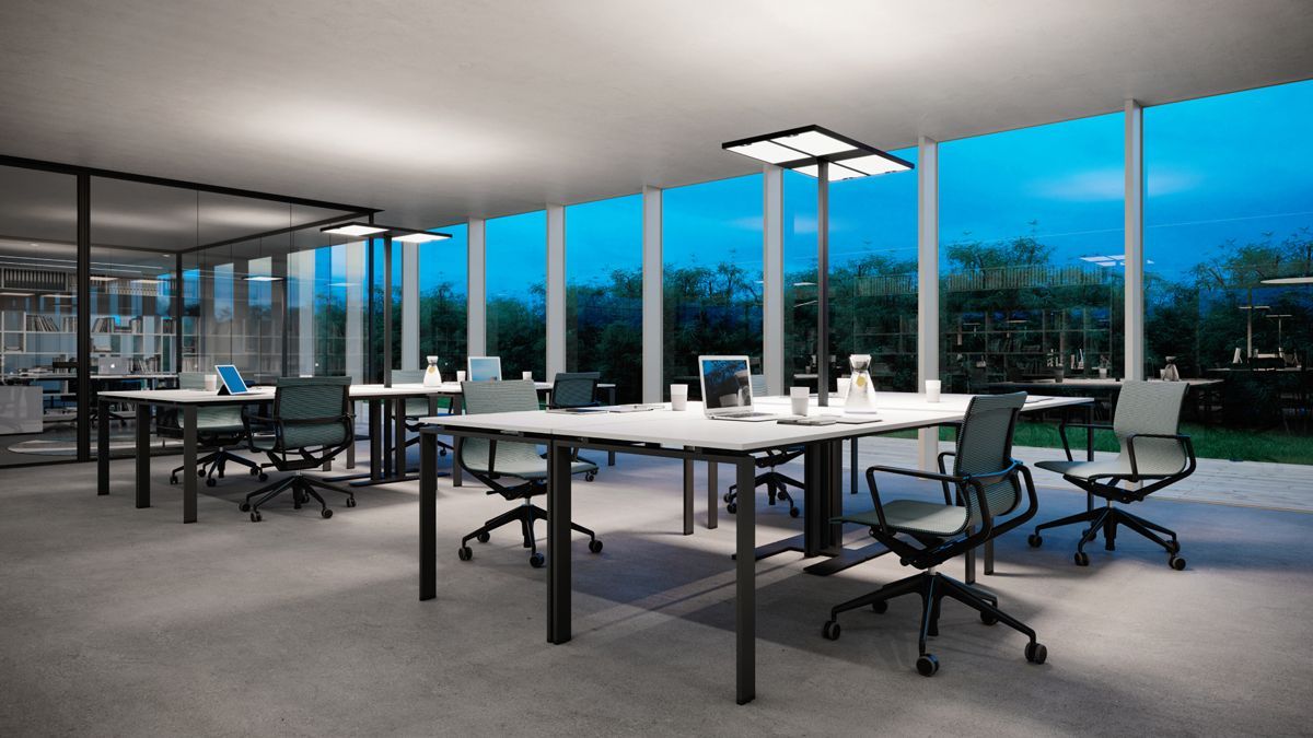 ARTELEA Stehleuchte von Zumtobel in einer Büroumgebung. Die Leuchte ist nach Cradle to Cradle Certified® 4.0 zertifiziert und auf Kreislauffähigkeit ausgelegt. Quelle: Zumtobel Group.